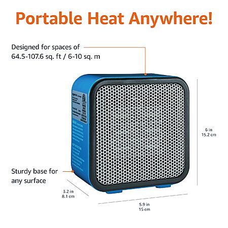 500W Amazon Basics Ceramic Portable Mini Space Heater (Blue, 5.9 x 3.2 x 6") $11.10 + Free Shipping w/ Prime or on $35+
