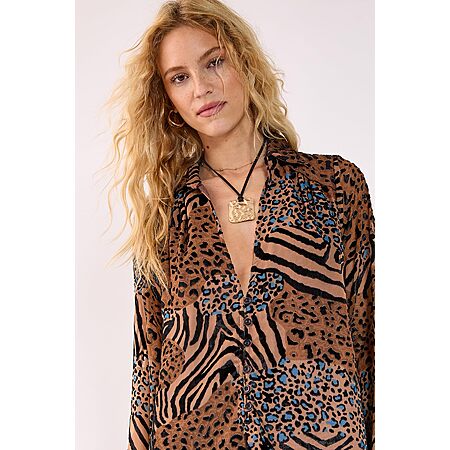 Nasty Gal Mixed Animal Devore Button Down Mini Tunic Dress $17.95