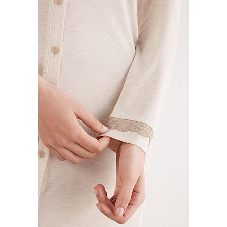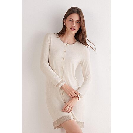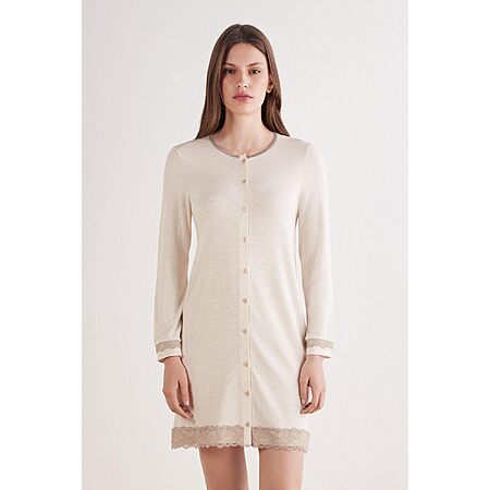 Intimissimi Woman's Button-Front Lace Detail Nightdress in Natural, Size M $44.85