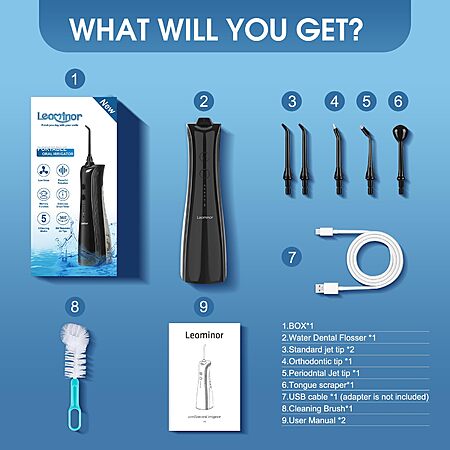 Leominor Water Dental Flosser - 5 Modes Cordless Portable Oral Irrigator Black) $6.99