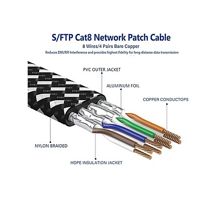 - Likely just a generic copper (or copper‑clad aluminum if you're unlucky) patch cord that sometimes works fine at 1 Gbit, maybe 2.5/5 Gbit on a short run, but absolutely not verified Cat 8 and definitely not magical 40Gbps over 50 ft.