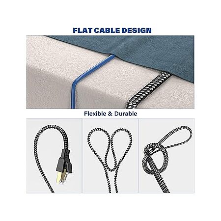 Orbram Cat 8 Ethernet Cables, 40Gbps 2000Mhz SFTP RJ45 Flat Cable, 10ft to 50ft from $5 at Woot!