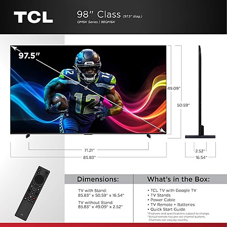 Model: TCL 98-Inch Class QM6K Series QD-Mini LED 4K UHD Google Smart TV Best Value Mini-LED TV - QLED, 144hz, 288hz Gaming Rate, High Contrast Screen, Onkyo Audio, Dolby Atmos (98QM6K, 2025 Model)