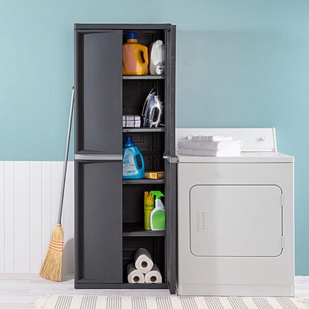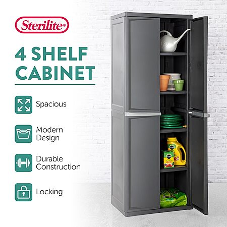 Amazon.com has Sterilite 4 Shelf Cabinet, Lockable Utility Storage w/ Adjustable Shelves, Gray - Plastic Shelving Unit for Organizing Garage, Pantry, Basement, Laundry Room or Mudroom on sale for $105.29. Shipping is free.