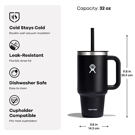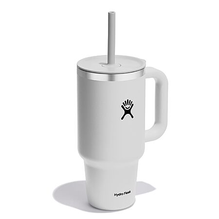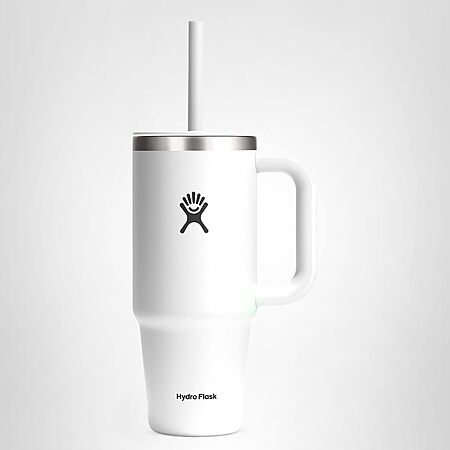 - 32 OZ WHITE TUMBLER: The insulated Hydro Flask 32 oz Travel Tumbler cup with easy flow straw is here to hydrate more and refill less. The insulation keeps drinks cold and the durable handle takes it to the next level. This stainless steel tumbler can go anywhere, fitting most cupholders.