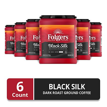 YMMV[S&S,AC]$19.97*:Folgers Black Silk Dark Roast Coffee, 9.6 Ounces (Pack of 6) at Amazon