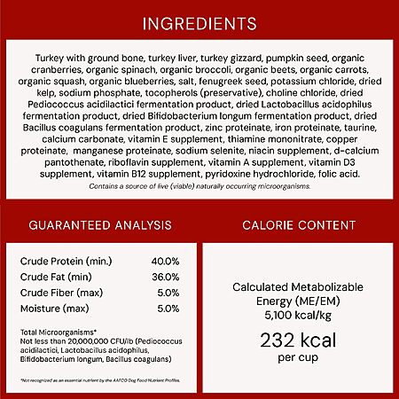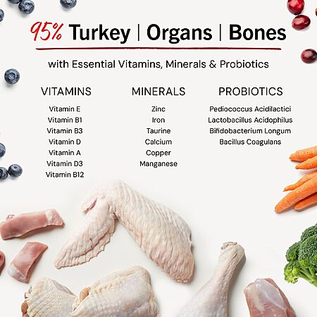 - SUPPORTS WHOLE BODY HEALTH - Customers report noticeable improvements in their pets including better digestion, shinier coats, and increased energy levels. Turkey provides a lean protein option with probiotics for digestive support and essential vitamins and minerals.
