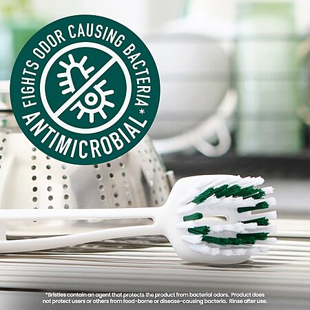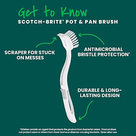 Amazon.com has Scotch-Brite Pot + Pan Brush, Durable and Long Lasting Dish Brush with Handle for Scrubbing Stainless Steel, Outdoor Furniture, and Sinks without Scratching, Antimicrobial, and Rinses Clean on sale for $9.27 when you [S&S].