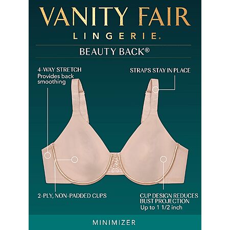 Vanity Fair Women's Plus Size Beauty Back Smoothing Minimizer Bra, Damask Neutral, 40D $23.78