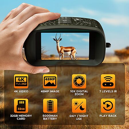HOTPEAK 48MP 4K Night Vision Binoculars with 10x Digital Zoom, 5000mAh Battery, 3" LCD Screen & 32GB SD Card $39.99 + Free Shipping