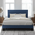 Allewie KMLL002 Queen Size Platform Bed Frame with Fabric Upholstered Headboard, Navy Blue