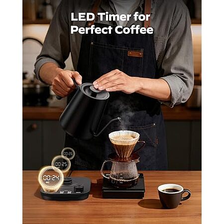 Model: Silonn Gooseneck Kettle, Electric Kettle with ±1°F Precise Temperature Control, Pour-Over Coffee,212°F Hold for 4-Hour Warmth, LED Brew Timer and 7 Presets, 304 Stainless Steel Kettle, 1200W/0.9L