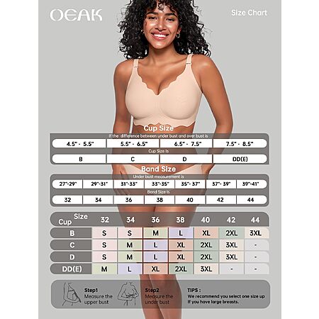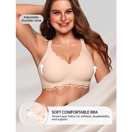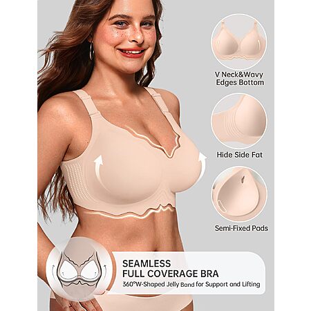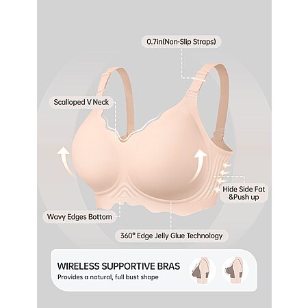 OEAK Women Jelly Bras Scalloped No Underwire Push Up Seamless Full Coverage Anti Sagging Bra Comfortable Convertible Everyday Bra Nude,L $9.34