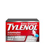 Tylenol Extra Strength Acetaminophen Rapid Release Gels, Fast, Strong Pain Relief, Fever Reducer, 500 mg Gelcaps with Laser‑Drilled Holes for Fast Release, OTC Medicine, 100 Count