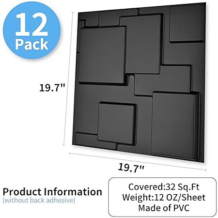 Amazon[amazon.com] has 12-Pack Art3d 19.7" x 19.7" City Wall Panel (Black) for $27.41 - $8.23 when you 'clip' the coupon on product page = $19.18. Shipping is free with Prime or on $35+ orders.