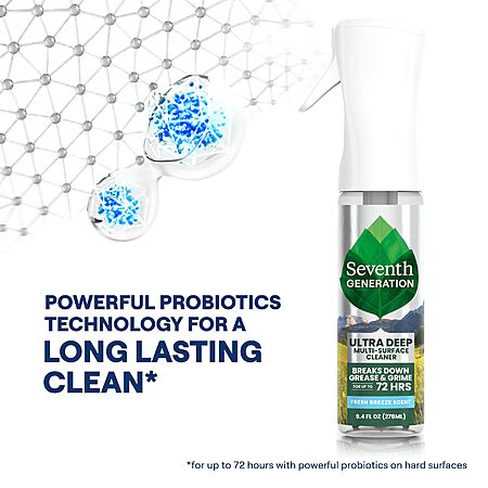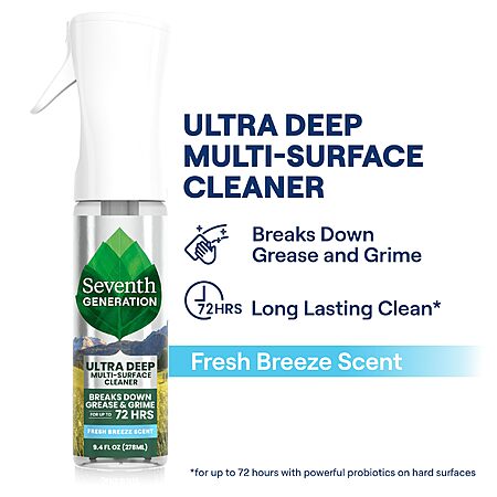 Model: Seventh Generation Ultra Deep Probiotic Multi Surface Cleaner, 9.4 Fl Oz, Fresh Breeze, 80% USDA Biobased All Purpose Cleaning Spray, Breaks Down Tough Grease & Grime, Safe for Kids & Pets