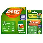 Zyrtec 24 Hour Allergy Relief Tablets Value Bundle of one, 90 ct Bottle & Three, 1 ct Travel Packs $37.30 @Amazon