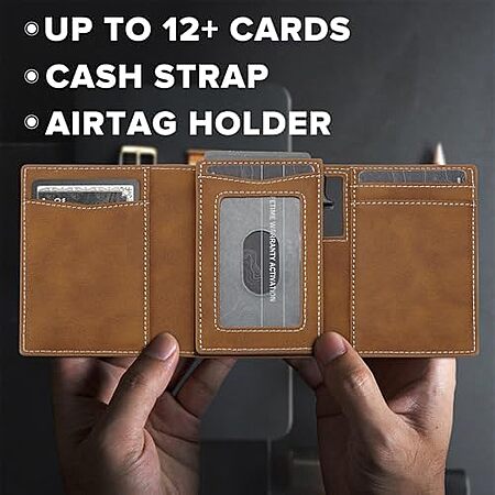 [Prime] $9.99* | Medrega Men's Slim RFID Minimalist Trifold Leather Wallet w/ Cash Strap or AirTag at Amazon