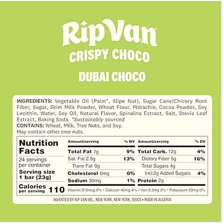 Rip Van via Amazon[amazon.com] has 12-Pk Rip Van Dubai Pistachio Creme w/ Kunafa Crispy Chocolate Snack Bars for $12.34 - 30% when you 'clip' the coupon on product page - 10% when you check out via Subscribe & Save = $7.41. Shipping is free with Prime or on $35+ orders.
