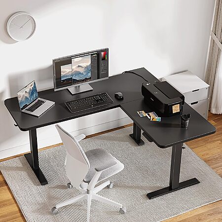 Cubiker L Shaped Standing Desk - 63 x 55 Inch Electric Adjustable Height Corner Standing Desk, Ergonomic Sit Stand Up Table with 3 Memory Buttons $179.99