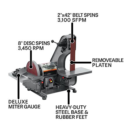 JET 2" x 42" Belt and 8" Disc Sander, 3/4 HP, 1Ph 115V (Model J-41002) $442.82