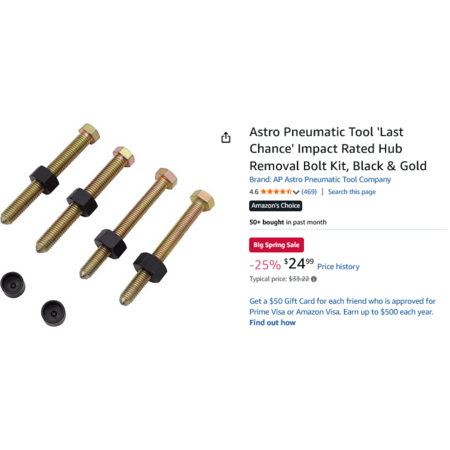Astro Pneumatic Tool 'Last Chance' Impact Rated Hub Removal Bolt Kit, Black & Gold $24.99