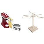 KitchenAid KSMPRA 3 Piece Pasta Roller & Cutter Attachment Set, Silver and Norpro Pasta Drying Rack Bundle $157.07