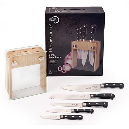 Mercer Culinary - M23505 Renaissance Forged Knife Block Set, 6-Piece, Wood Block with Tempered Glass $149.00