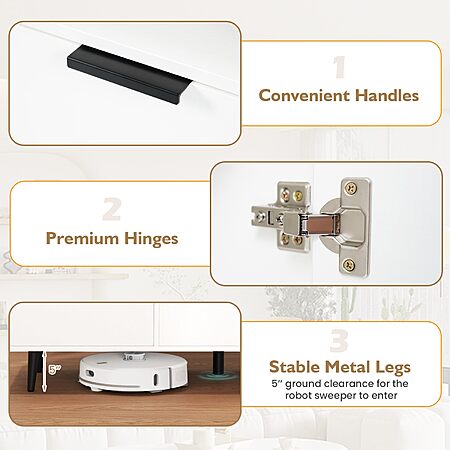 • [Stable Construction]: Boasting a sturdy construction that can support up to 350 lbs, this sideboard buffet cabinet is built to last. Additionally, the legs are raised 5" off the ground, making it a breeze to clean underneath with a robot sweeper.
