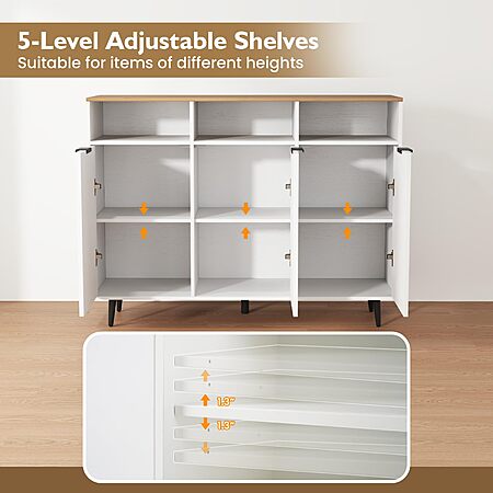 • [5-Level Adjustable Shelves]: With 5-position adjustable shelves, the coffee bar cabinet accommodates items of various heights with ease. Each shelf increment is 1.3", offering a customizable storage experience for you.