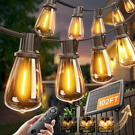 102FT(96+6) Solar String Lights Outdoor with Remote from addlon for $25.19 Prime Member