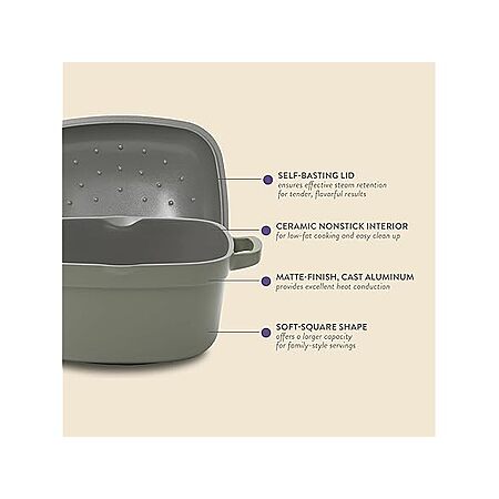 - MADE FOR EVERYDAY COOKING: Cast aluminum cookware provides excellent heating to deliver evenly-cooked dishes. Built for durability and everyday use, this pot features a special, soft square shape to accommodate more ingredients and family-style servings of stews and soups. The four, rounded corners function as gentle pour spouts to smoothly transfer the last bits of food or excess oils into another container.