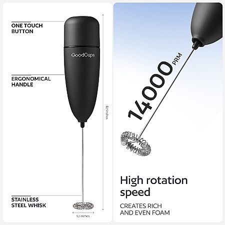 Milk Frother Handheld – Electric Foam Maker Wand with Stainless Steel Whisk – Battery Powered Mini Mixer for Coffee, Matcha, Lattes & Cappuccinos, Black $3.97
