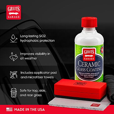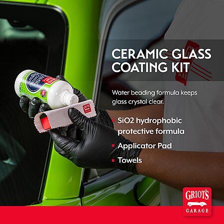 $15.99*:Griot's Garage Ceramic Glass Coating Kit for Car Detailing, SiO2 Hydrophobic Formula, Applicator Pad & Towels (10867) at Amazon