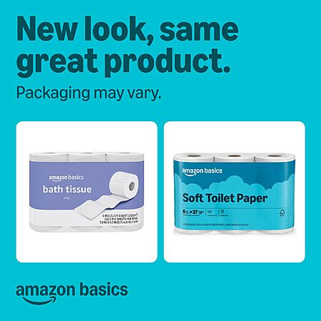 $21.42: Amazon Basics 2-Ply Soft Toilet Paper, 30 Rolls (5 Packs of 6), 350 Sheets per Roll, Septic Safe
