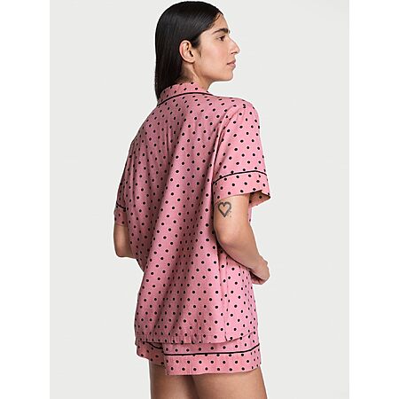 Victoria's Secret Flannel Pajama Set, Short Sleeve Shirt and Shorts, Pajamas for Women, Black Dot, M $26.98