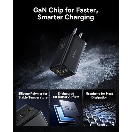 Model: Baseus 65W USB C Charger Block, 2 Pack 3-Port Fast Compact Foldable GaN USB C Charger for MacBook, iPad Pro, Galaxy S24, iPhone 16/15 and More Series