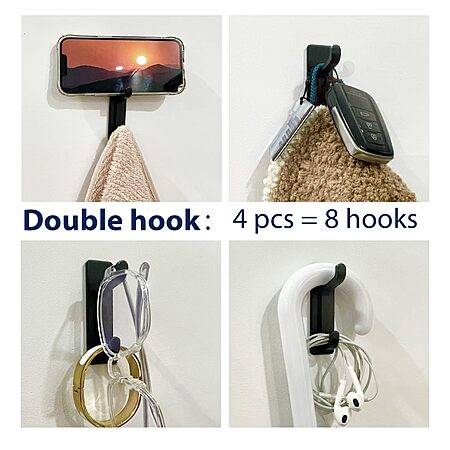 pickpiff Wall Hooks for Coat and Towel: 13LB Strong Adhesive Door Hanger Stick on, Black 4 Pack $8.54