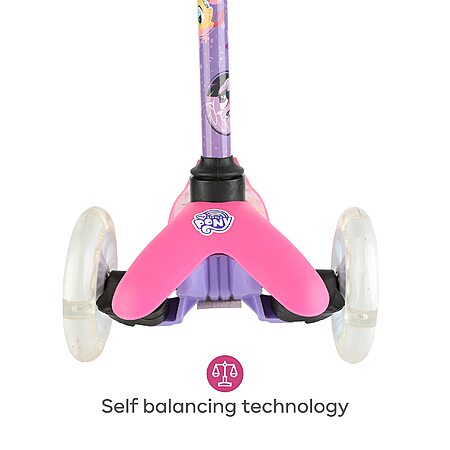 My Little Pony Self Balancing Kick Scooter with Light Up Wheels, Extra Wide Deck, 3 Wheel, Foot Activated Brake, 75lbs $28.21