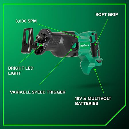 This saw features Orbital Cut Mode, 36% Less Vibration, 1-1/8" Stroke Length, 3,000 SPM, and a LED Light. Free shipping with prime membership.