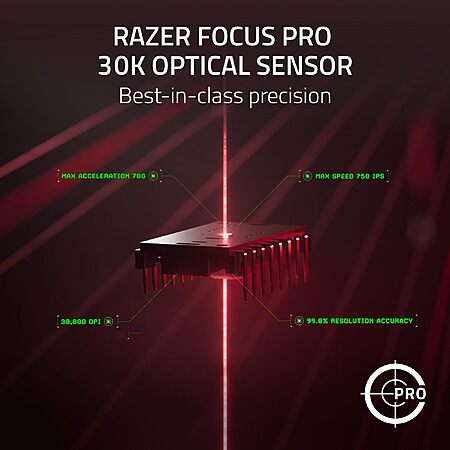 - FOCUS PRO 30K OPTICAL SENSOR — Flawless tracking performance on a wider variety of surfaces including glass—supported by intelligent functions for enhanced aim and control