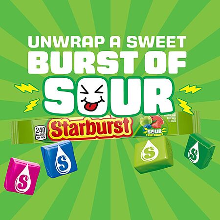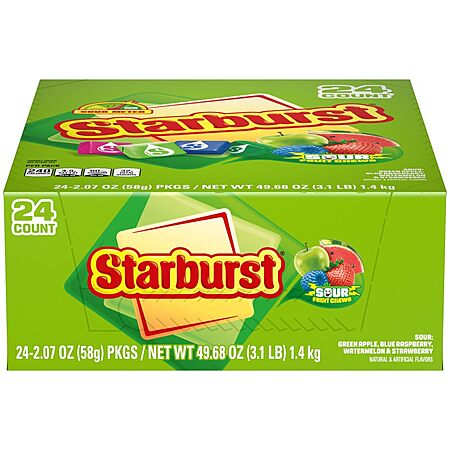 $26.64: STARBURST Sour Chewy Candy Individually Wrapped Tart Fruit Chew, Share Size, 2.07 Oz Pack, 24 Count