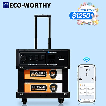 Smart & Portable Design :Built-in app monitoring, stackable modules, and a wheeled trolley with telescopic handle make it easy to move, manage, and customize your power system anywhere.