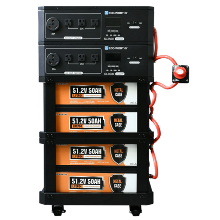 Package Include: 1 x 3500W inverter/controller package, 1 x base stand package, and 2 x 48V 50AH battery package