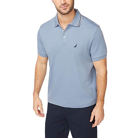 Nautica Men's Classic Fit Short Sleeve Dual Tipped Collar Polo Shirt, Lake City Blue $19.26