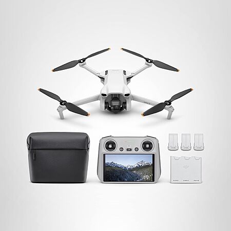 DJI Mini 3 Fly More Combo (DJI RC), Drones with Camera for Adults 4K, 3 Batteries for 114-min Flight Time, Vertical Shooting, 32800ft (10km) Video Transmission, Mini Drone $499