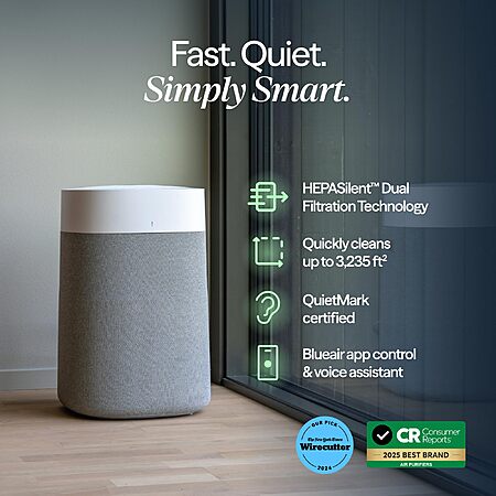BLUEAIR Air Purifiers for Large Rooms, Cleans 3,048 Sqft In One Hour, HEPASilent Smart Air Cleaner For Home, Pets, Allergies, Virus, Dust, Mold, Smoke - Blue Pure 211i Max $199.99