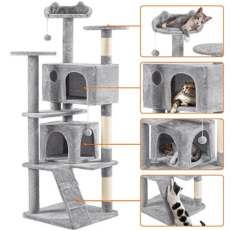 Yaheetech via Amazon.com has Yaheetech 70in Multi-Level Cat Tree Tall Cat Tower Cat Furniture with Condo, Scratching Posts & Dangling Ball for Indoor Cats Activity Center, Light Gray on sale for $52.59. Shipping is free.