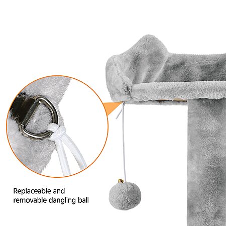 - DANGLING BALL: The cat condo and the top perch hang a ball for more excitement, and you can remove it or replace it with your own balls