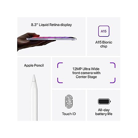 - Gorgeous 8.3-inch Liquid Retina display with True Tone - A15 Bionic chip with Neural Engine